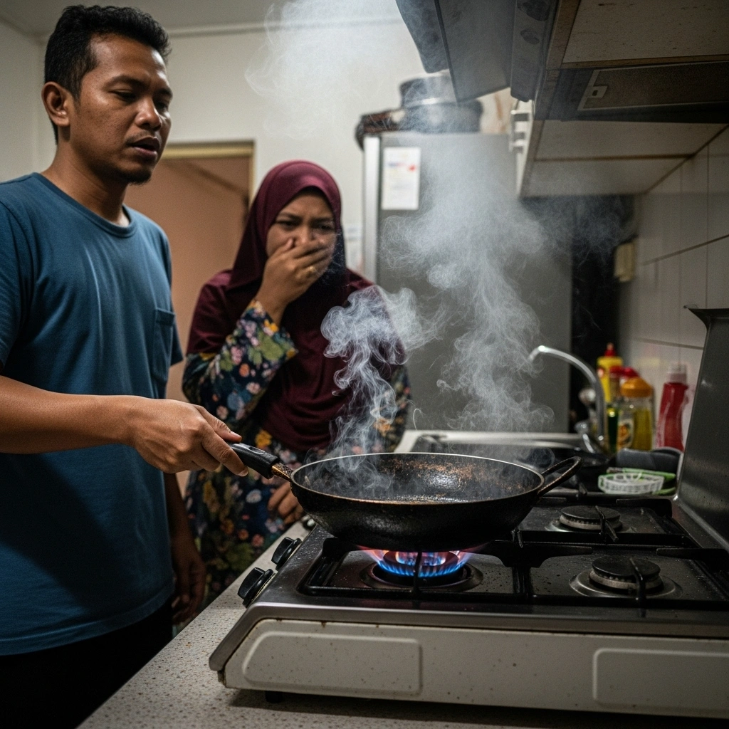 Tiada lagi sisa hitam & minyak terbakar di dapur.
